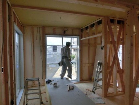 昨日、屋根断熱工事が行われました。引き続き造作工事に入っております。今日は瑕疵保険の検査も行われました。