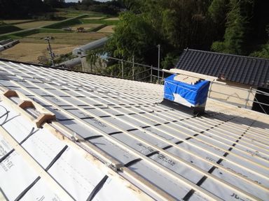 本日から瓦工事と外壁工事が始まり、内部ではUB工事と屋根吹き付け工事が行われました。
