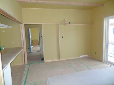 外壁工事の下塗りが終了しました。来週、中塗りの予定です。内部ももうすぐ大工工事終了です。