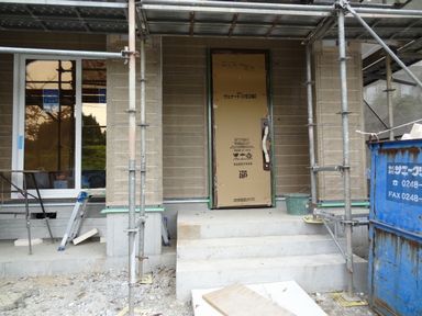 先日、外部の漆喰塗り工事が行われました。もうすぐ足場も解体です。