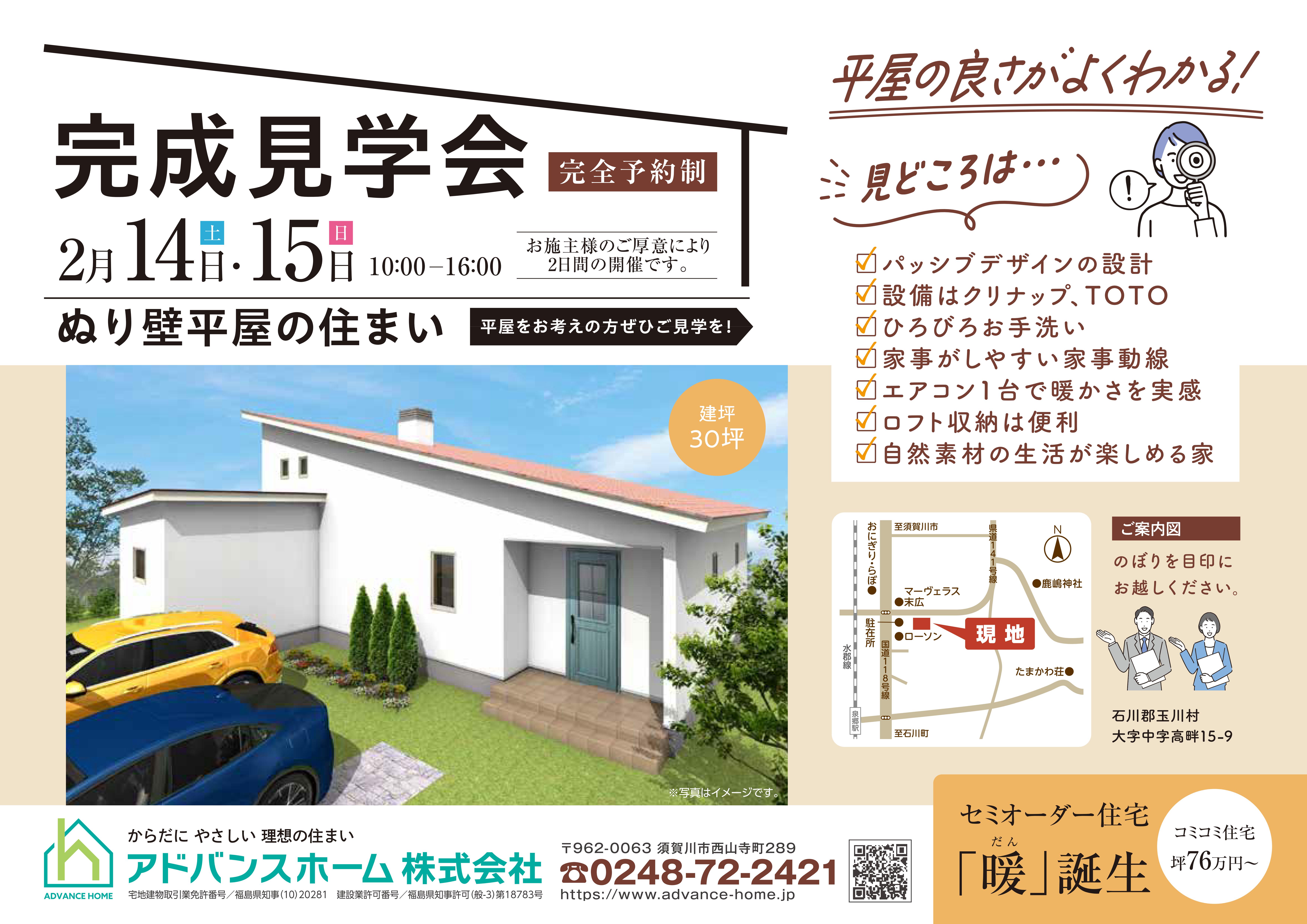 玉川村完成現場見学会のお知らせ 2月14日・15日