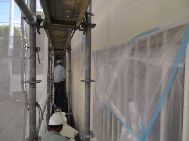外壁の漆喰塗が行われました。天気が良いので白い外壁が眩し~(^^)