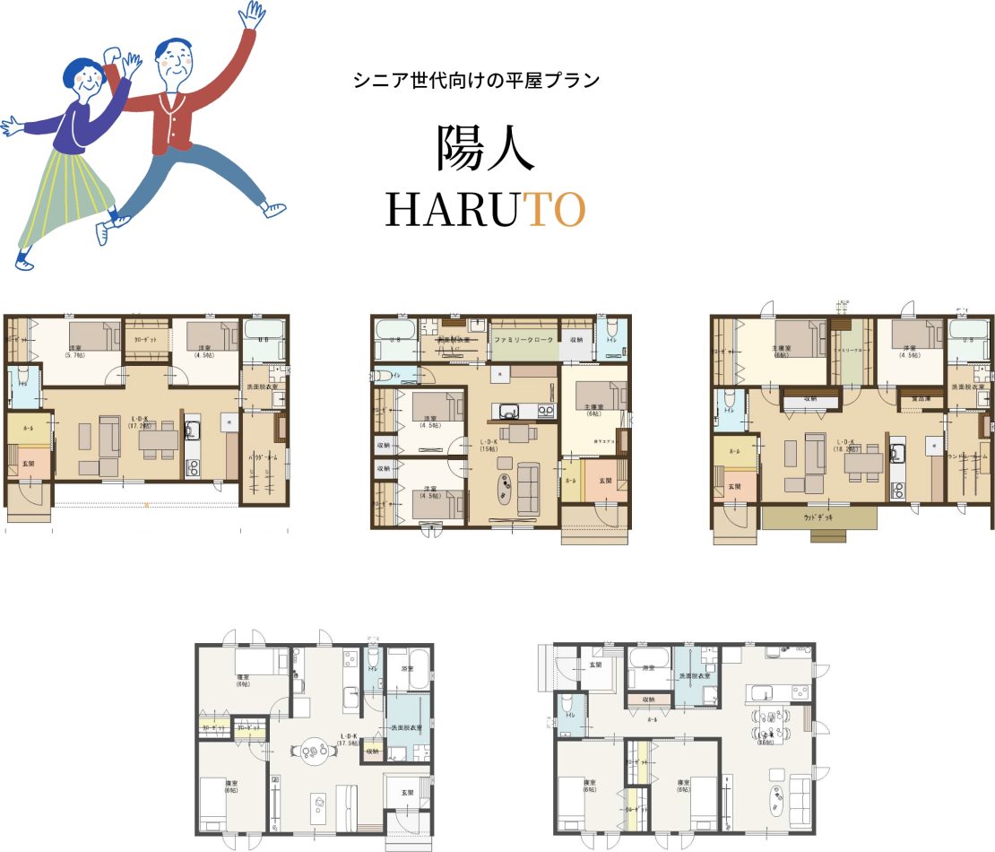 陽人 HARUTO シニア世代の「あるといいな」を取り入れた人気の平屋プラン HARUTOプラン例 HARUCA 面積 建築面積 102.68㎡(31.06坪) 1F床面積 92.75㎡(28.06坪) 延床面積 92.75㎡(28.06坪) 工事施工面積 102.68㎡(31.06坪)