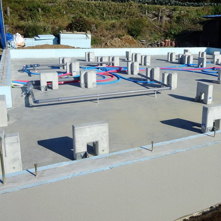これは1台のエアコンで床下全体に暖かい空気を送るのにどうしても必要な基礎なのです。